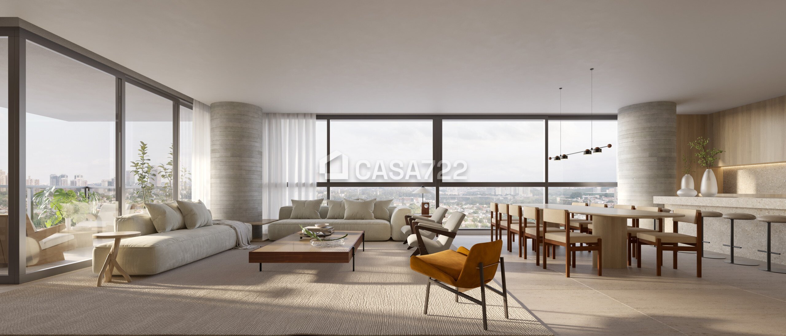 Com vistas livres para o verde, para a cidade e o nascer do sol.
