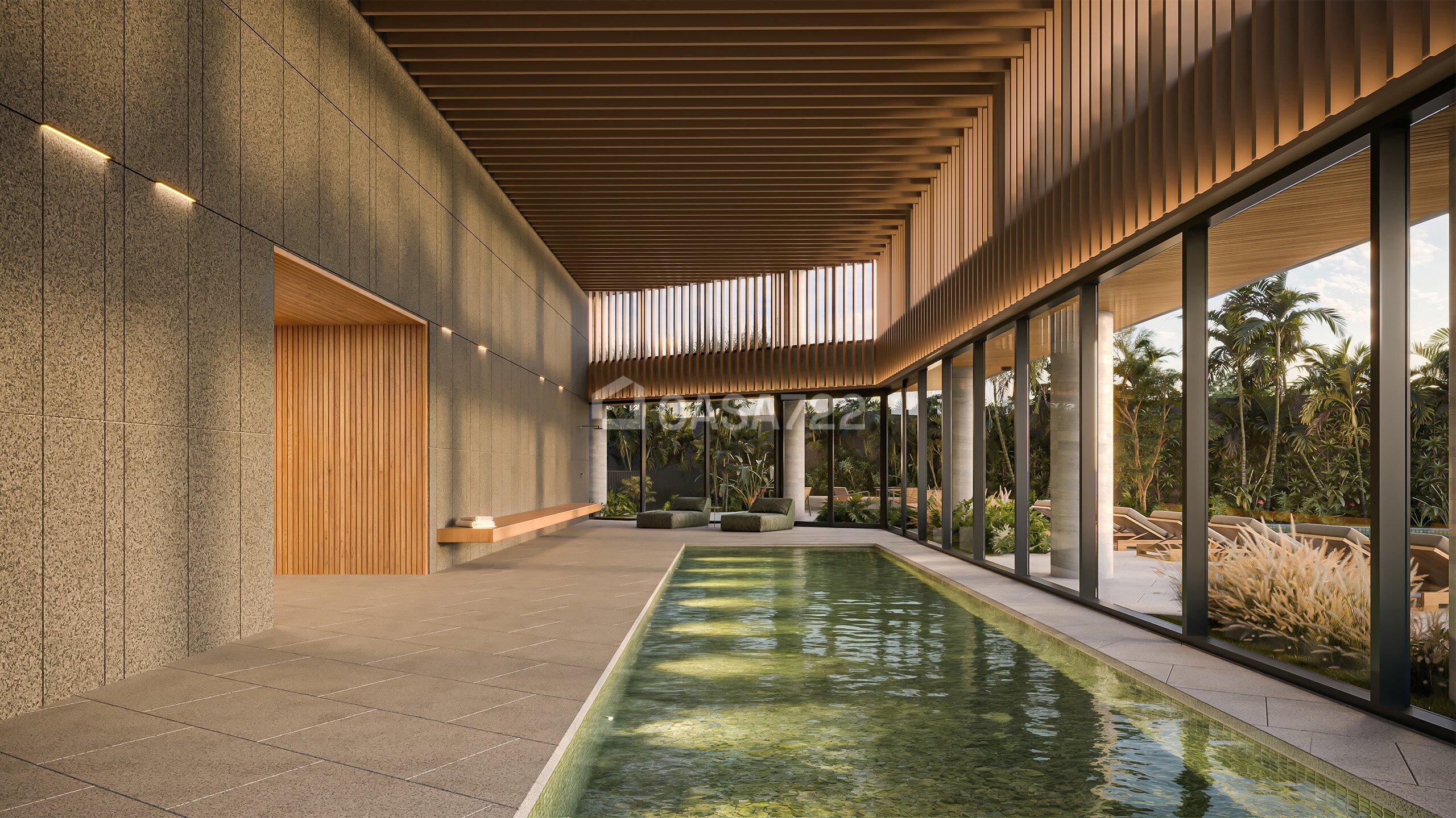 • Conexão com a natureza através de paisagismo exuberante, uso de materiais naturais e espaços abertos