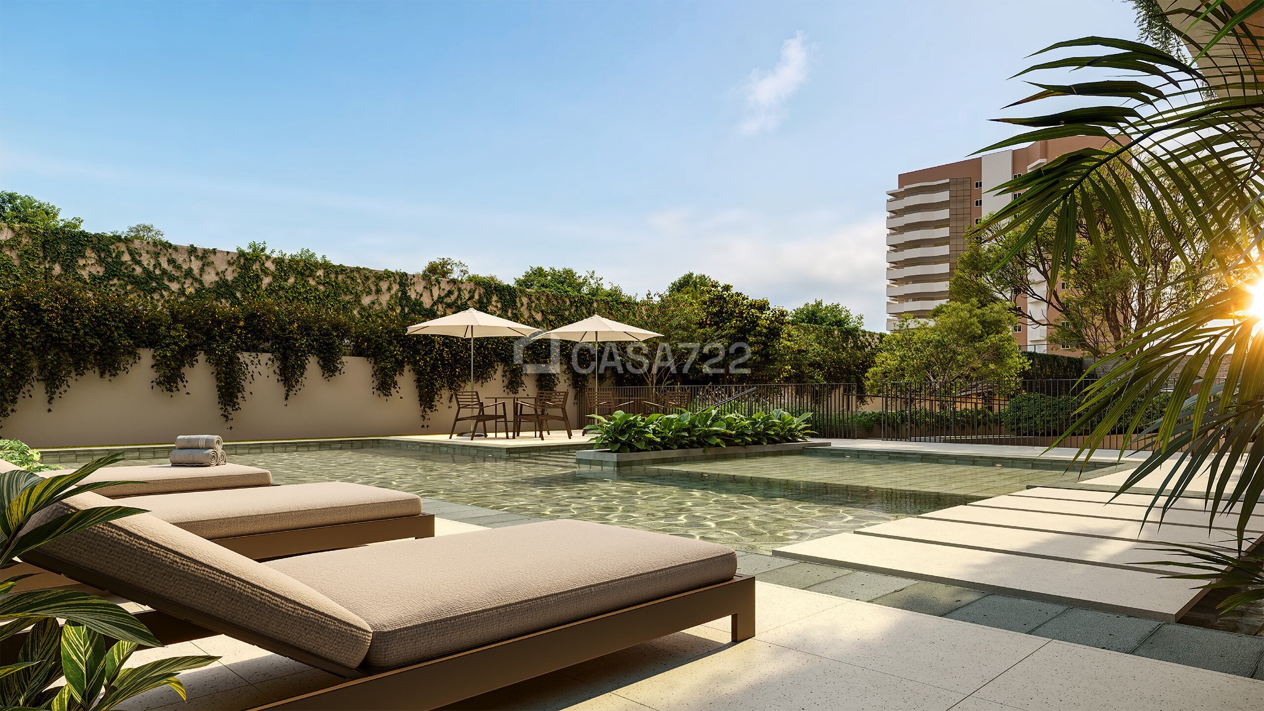 • Espaços restauradores (praça, piscina, academia e horta)