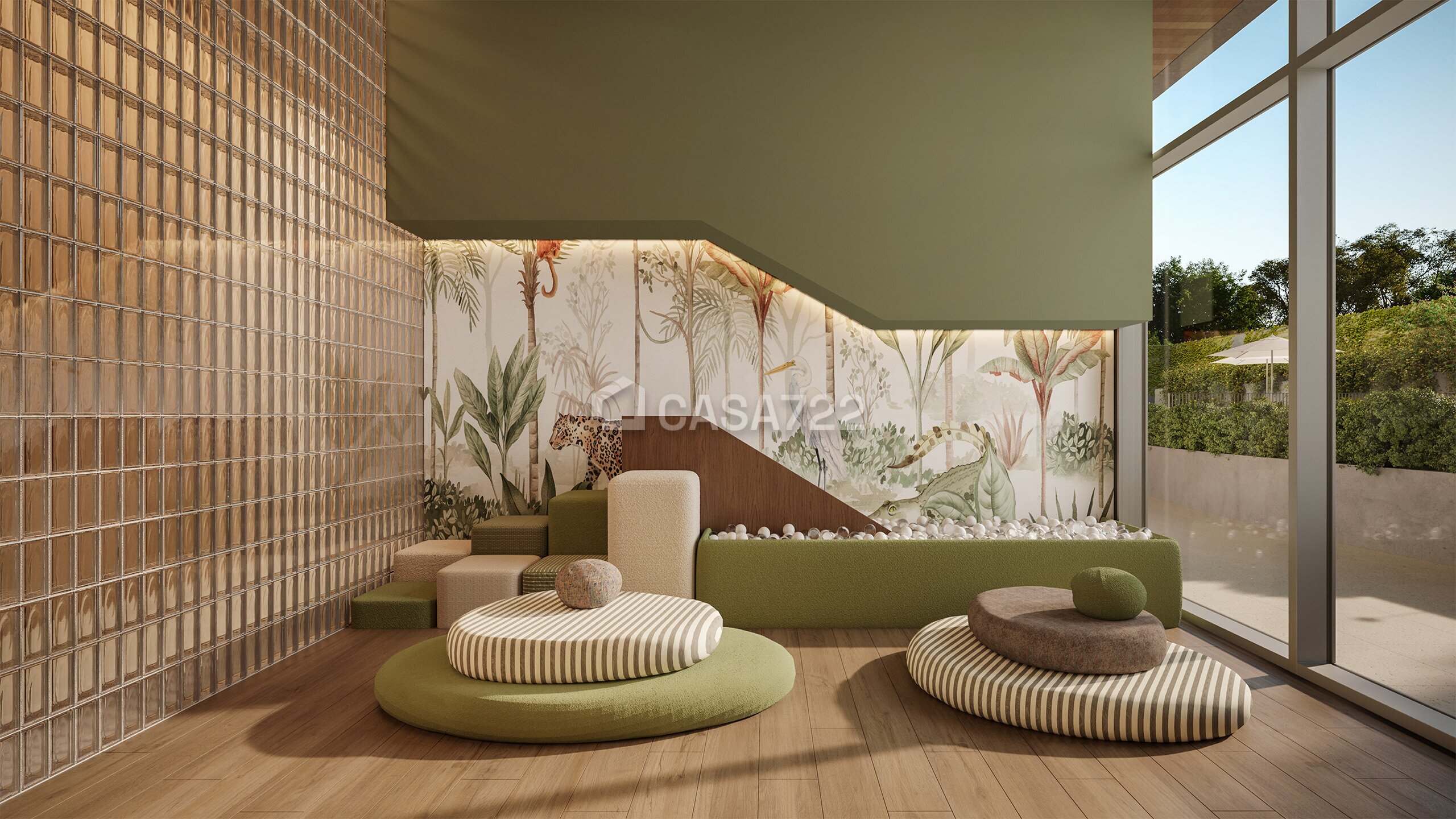 • Espaços restauradores (praça, piscina, academia e horta)