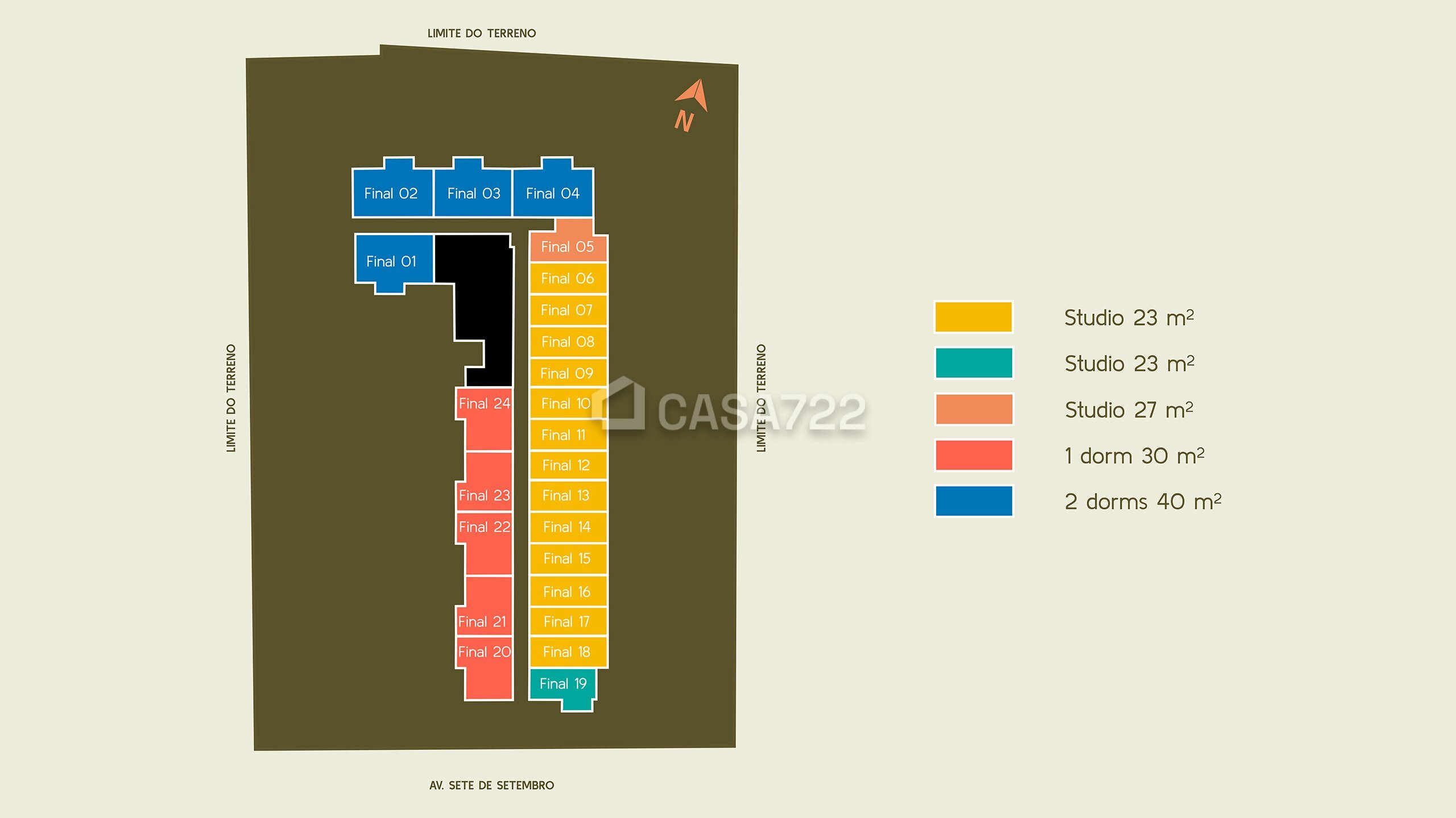 • Studios de 20 m² — alta rotatividade e maior yield percentual